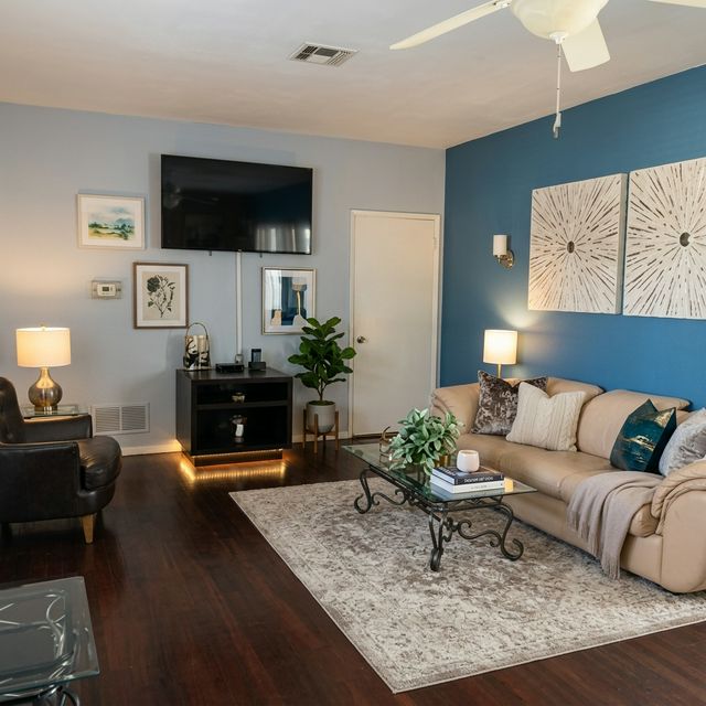 Thoughtfully styled blue interiors designed purposely to lower stress levels, de-escalate anxiety, and promote profound mental healing.